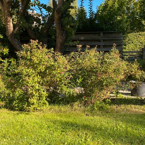 Vi har evt også 6 flotte hvidblomstrende spirea buske på ca 130 cm højde. Disse blomstrer senere.