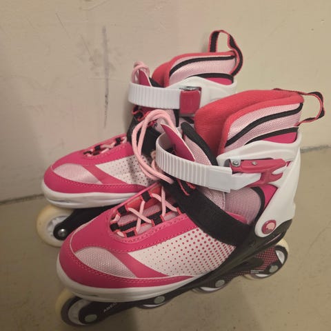 Næsten ubrugte og særdeles velholdte fra ikke-ryger/dyr hjem. Vi har orginal emballage og kvittering (700 kr fra ny). Størrelsen kan justeres fra 32-35 på en solid og smart måde.