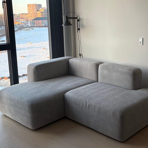 Sofaen er samlet af moduler, så den kan skilles ad.