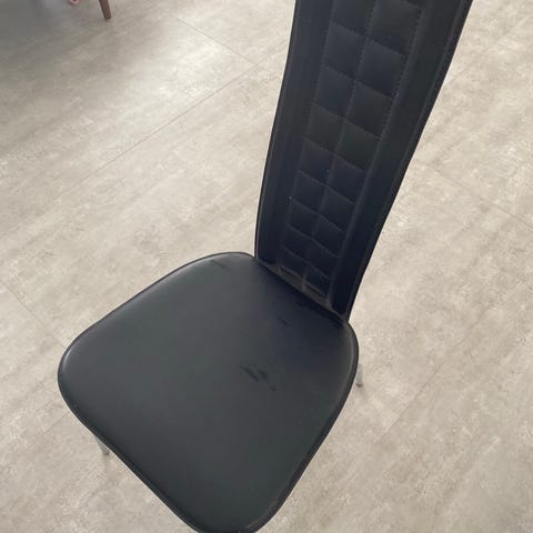 Seks spisebordsstole i læder med sort mat metal stel.