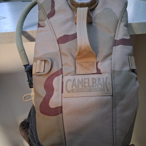 CamelBak rygsæk med integreret drikkesystem i camouflagefarve. tactical hydration