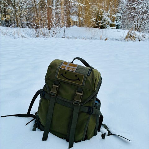 Tasken har skulderstropper med justerbare remme og brystrem for bedre pasform. Forsiden har flere kompressionsremme og fastgørelsespunkter. Bagsiden er i ensfarvet sand/brun materiale. Egnet til brug på ture, vandring eller anden udendørs aktivitet, hvor der er behov for at medbringe vand og mindre udstyr.