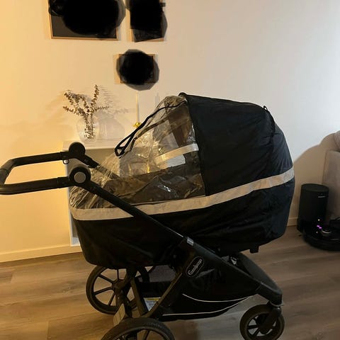 Barnevognen er velholdt og har almindelige brugsspor, men fremstår pæn og fuldt funktionel. Den har været opbevaret tørt og røgfrit. Perfekt løsning fra nyfødt og op til tumling.