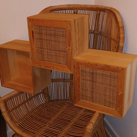 Kvadratiske kasser, der kan hænges på væggen enkeltvis eller i forskellige kombinationer. Velegnet til opbevaring eller udstilling af mindre genstande i fx stue, køkken eller børneværelse.