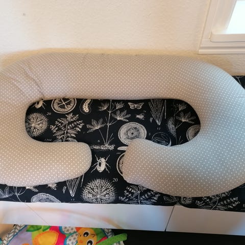 U-formet graviditetspude i grå farve. Brugt begrænset.