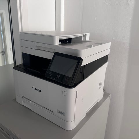 Høj kvaliteten Multifunktions laserprinter med intuitiv bruger display, trådløs forbindelse og kan kobles til print fra din iPhone. Har næsten IKKE være brugt og har derfor endnu 80% blæk i alle patroner.