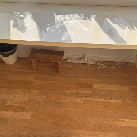 Lækkert stort skrivebord. Ideelt hvis du har brug for meget plads til mange skærme. Hæve/sænke funktion