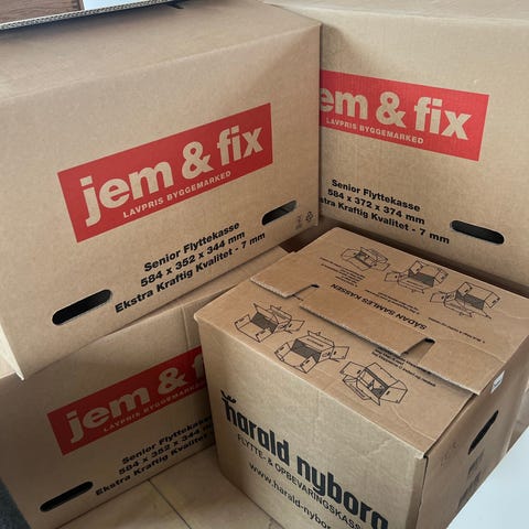 Pelican Self Storage flyttekasser i pap. Kasserne er egnede til opbevaring og flytning af forskellige genstande. Papkasserne kan foldes sammen, når de ikke er i brug, og har håndtag til lettere håndtering. Flere kasser fra blandt andet Pelican Self Storage og Bauhaus kan indgå i partiet.