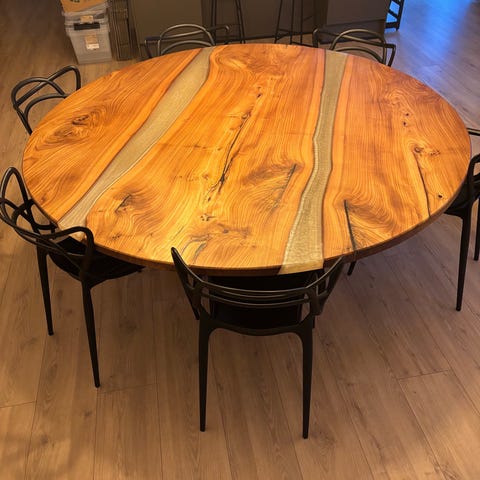Håndlavet egetræs bord fra Knast KBH med tillægsplade.
