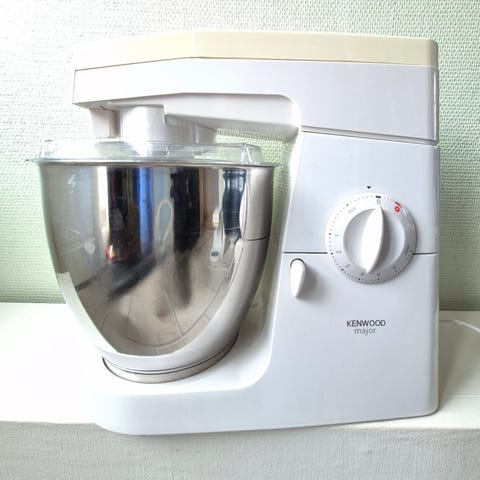 Blender, 2 skåle, stænklåg, kødhakker, dejtyller, piskeris, k-spade og dejkrog.