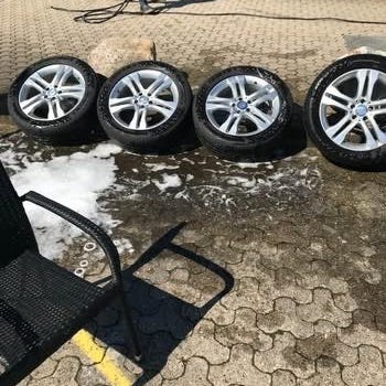 Billige 18” sommerhjul med gode bridgestone dæk fra 2025. 7 mm mønster. 1 dæk skal skiftes. ET 45. Har siddet på en C-klasse fra 2018, men passer på mange modeller. Ridser på fælge