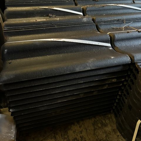 Melodie vingefalstagsten sort ædel engoberet 105stk , 7stk rygsten, 4stk vindskedesten højre og 5stk vindskedesten venstre