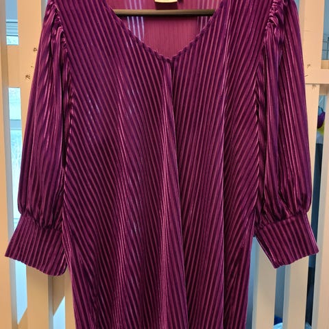 Str. 40, måler ca. 102 cm om brystet, skulderbredde 38 cm, ryglængde ca. 62 cm.