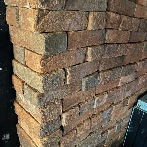 Munkegårdssten som er velegnede til kantsten eller opbygning til små højbede. Stenene har rektangulær form og været limet sammen på tre flader.