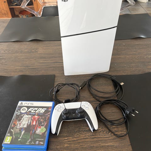 Jeg sælger den her PS5 fra feb 2024 med tilbehør. Den fungere som ny og I flot stand, men der en lille ubetydelig ridse foroven(billede 7). Der følgere også låg med, hvis du kun vil spille digitale spil og sælge diskdrevet.