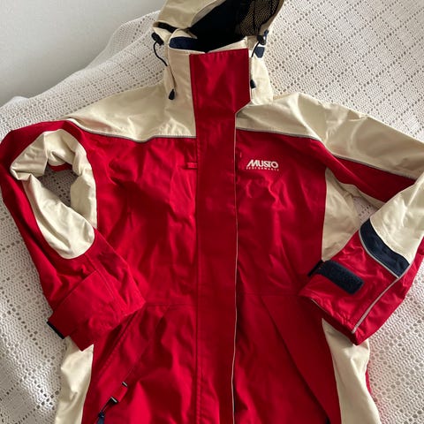 Gul spraytop sejljakke i rød med sorte detaljer. Jakken har halv lynlås foran, høj krave og justerbare manchetter. Velegnet som yderlag til sejlads og andre vandaktiviteter, hvor der er behov for beskyttelse mod vind og stænk.
