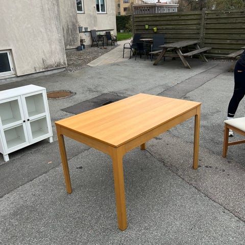 Spisebord fra IKEA. Er malet i en mint grøn farve. Der medfølger to plader til bordet, de kan opbevares inde i bordet. Kan afhentes på Nørrebro. Nypris 3500kr