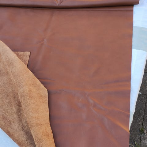 Vareprøve der måler ca. 65 x 149 cm. Beigefarvet semi-anilin.