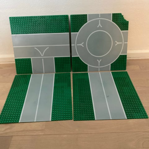 12 Skt LEGO City vejplader til opbygning af vejsystem i LEGO bymiljøer. Sættet består af plader med lige vejstykker, sving og kryds med afmærkede fodgængerfelter. Pladerne kan kombineres med andre LEGO City elementer og bruges som base til køretøjer, bygninger og andre byscenarier.