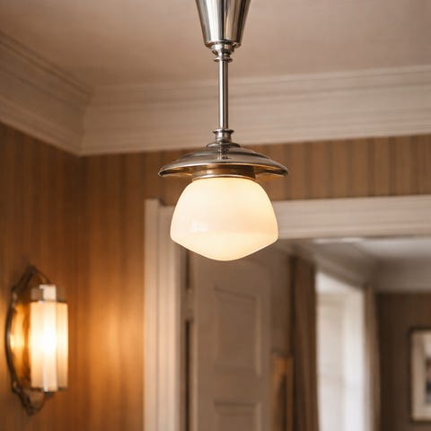 Funktionalistisk loftslampe i krom ca. 1930 – til samlere / restaurering
