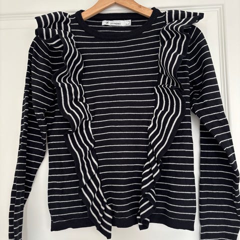 Sort/hvid striktrøje med lynlås i halsen sælges.