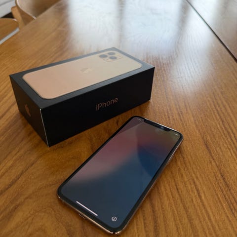 Apple iPhone 11 Pro smartphone med 64 GB intern hukommelse. Modellen har tredobbelt kamera på bagsiden og frontskærm med fuld touch-betjening. Enheden vises her i grøn farve. Telefonen kan bruges til almindelig kommunikation, internet, apps, foto og video. På billederne ses også oplader og et beskyttende cover, som eventuelt følger med efter aftale med sælger.