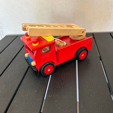 Legetøjsbrandbil i træ med figurer