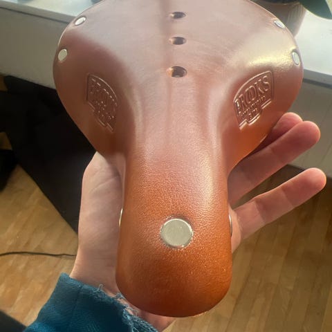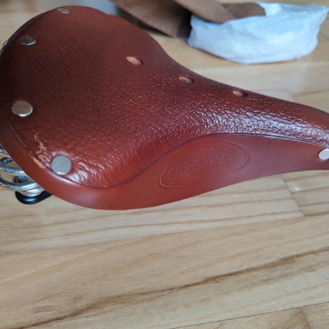 Klassisk Brooks B66S dame cykelsadel i brun læder til montering på alm citybike. Er monteret på sadelrør