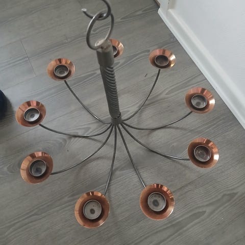 Smedejerns loftlampe til fyrfad eller stearinlys sælges
