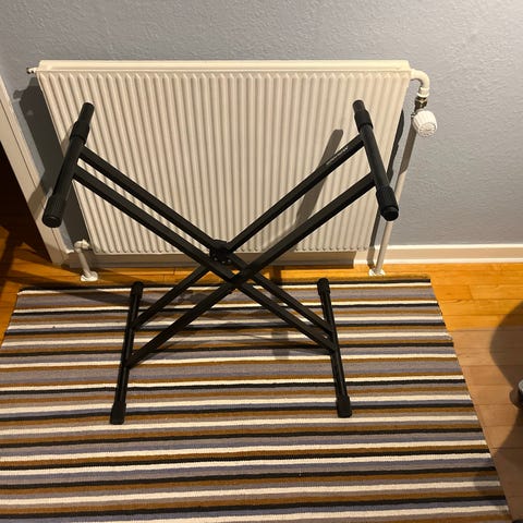 Keyboard bænk i sort med polstret sæde. Sammenklappeligt X-stativ med gummifødder for stabilitet. Velegnet som siddeplads ved elklaver, keyboard eller andre tangentinstrumenter. Justerbar højde. Endvidere ubrugt sustain pedal. Prisen er for begge dele samlet.