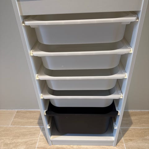 IKEA børnemøbel opbevaringsreol med plastkasser hvid lyserød