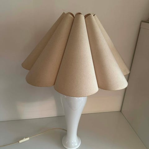 Sælger denne utroligt smukke og klassiske bordlampe fra Royal Copenhagen. Lampen er udført i hvidt opalglas med en elegant, slank form, der passer ind i ethvert stilrent hjem.