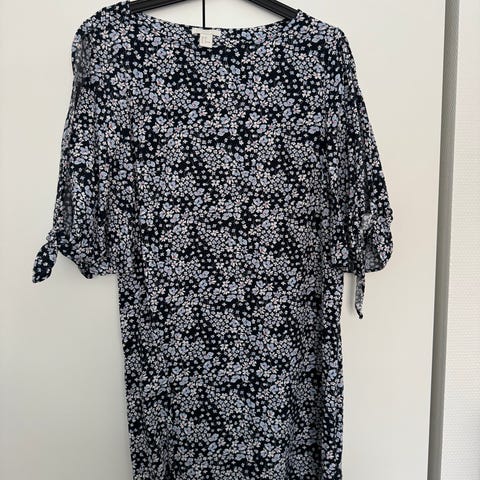 H&M hverdagskjole i str. 38. Kjolen er i grøn viskose med diskret mønster i stoffet. Den har lange ærmer og en lige, enkel pasform, der går ned over knæet afhængigt af højde. Velegnet som hverdagskjole, der kan bruges alene eller med leggings/strømpebukser.