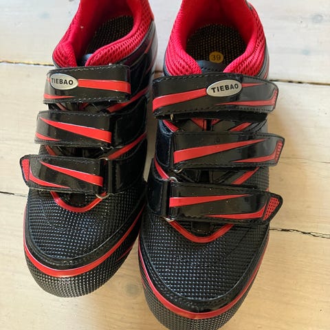 Muddyfox RBS 100 cykelsko i størrelse 39 (EU). Skoene er i farven hvid/sort og har tre velcrolukninger for justerbar pasform. Sålen er designet til montering af klamper til klikpedaler. Overdelen er i syntetisk materiale med ventilationshuller ved forfoden. Egnet til landevejscykling eller træning med klikpedaler, hvor der ønskes en stiv sål og fast fodfæste.