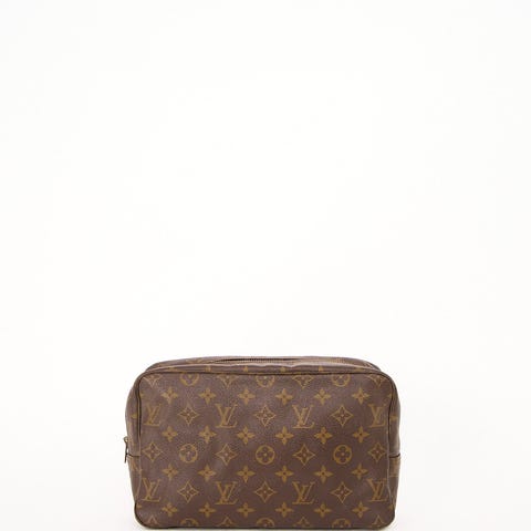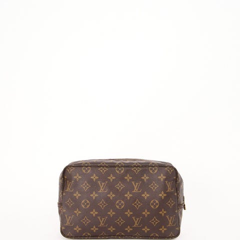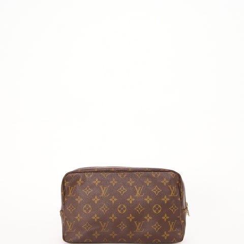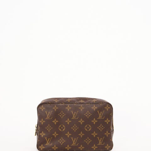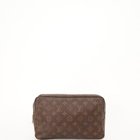 Louis Vuitton Toilette 23 i ikonisk Monogram Canvas. En tidløs og super anvendelig LV-classic, der fungerer perfekt som toilettaske i weekender og på rejser, men også som clutch/organizer i en større taske. Den rene, minimalistiske form gør den let at style, og monogram-canvas er kendt for sin slidstyrke og for at holde sig flot over tid.