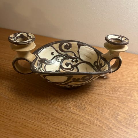 Tre dele Kähler keramik fra samme serie (303) sælges samlet. Håndmalet dekor i brun/orange nuancer. Alle dele er stemplet .