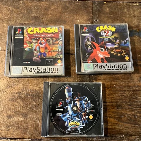 Crash Bandicoot og Resident Evil 2 til Playstation.