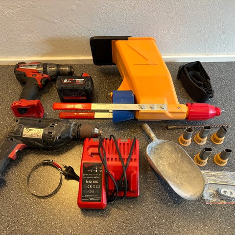 Mørtelfugepistolen består af en adapter, som kan monteres på alle typer bore-/skruemaskiner. Forhandles både med og uden boremaskine. Klar til brug.