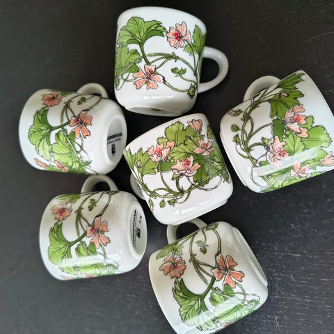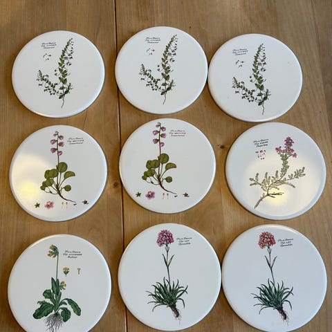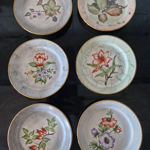 4 tallerkener fra Midsommar serien, ddsign by Marguerite Walfridson i 1975. Der er 2 dybe D ca 20 cm og 2 frokost tallerkener D ca 19 cm. De er super velholdt, dog har den ene frokost tallerken et micro slag( se sidste foto )