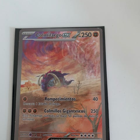 Pokémon Colmivargo GX samlekort. Kortet viser Colmivargo GX med 250 HP og angrebene Rompecimientos og Colmillos Gigantescos. Teksten på kortet er på spansk. Velegnet til samling eller som del af et Pokémon TCG deck.
