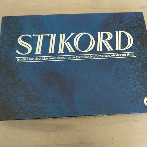 Stikord brætspil på dansk. Spillet er et ordspil for 3-8 spillere fra ca. 10 år og opefter. Indholdet omfatter spilleplade, kort, terninger, brikker og øvrige spilleelementer som vist på billederne. Spillet er velegnet til grupper og familiebrug, hvor deltagerne dyster i at finde og gætte stikord ud fra bogstaver og ledetråde.