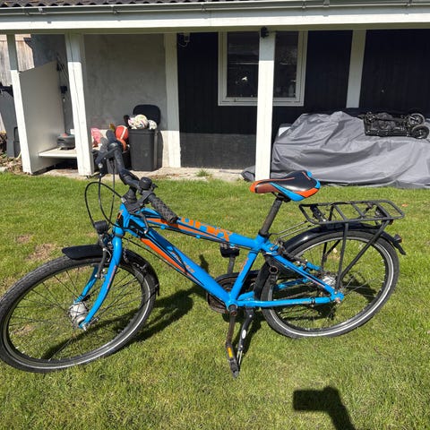 Børnecykel med 24" hjul i grå med pink detaljer. Cyklen har lav indstigningsramme, kurv foran samt bagagebærer bagpå. Udstyret med skærme og kædeskærm. Egnet til større børn, der passer en cykel med 24" hjul.