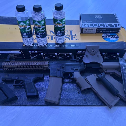 Tilbehør: Der medfølger ét magasin (der er tape-rester på det, som ses på billedet).