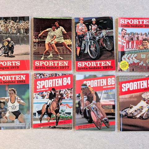 Gaveide til den sportselskende. Sportsblade i perioden fra 1973 til 1991 med super dynamiske fotografier af tidens sportshelte og heltinder. Hele paletten af sportsgrene. 8 blade sælges samlet for 75kr