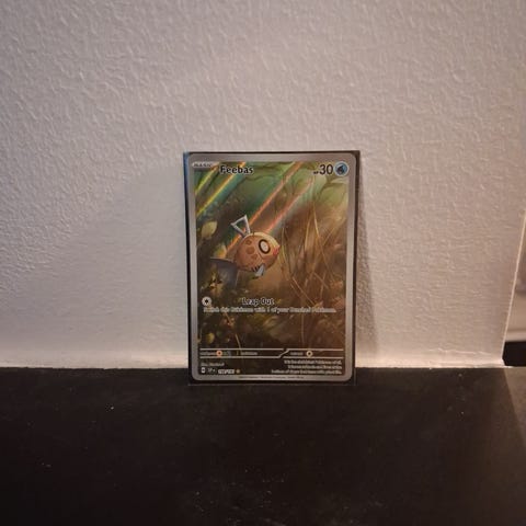 Pokémon samlekort. Standard størrelse samlekort med klassisk Pokémon bagsidemotiv. Velegnet til samling eller brug i Pokémon kortspil. Yderligere specifikationer som sæt, årgang og kortnavn fremgår ikke tydeligt af billederne.