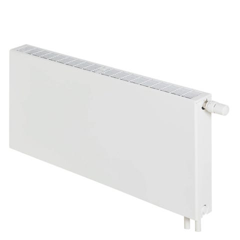 Stelrad Compact All In dobbeltplade radiator model T22. For ligetil montering leveres radiatoren med vægbæringer, prop og luftskrue, mens topristen og sidepanelerne selvfølgelig også medfølger.