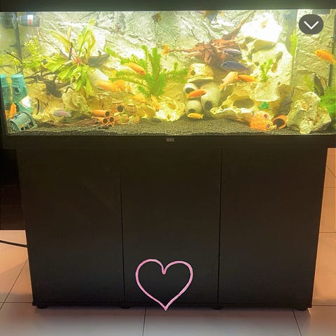 Fint 230L akvarie med filter og vandkøler. Har været brugt til Axolotl - brugt men fungere fint. Har stået uden indhold ca 1 år.