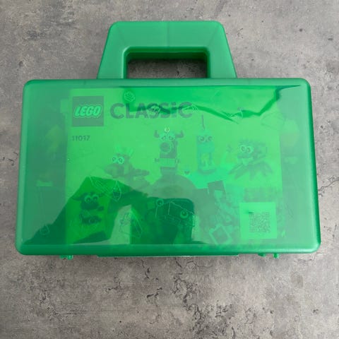 LEGO kuffert i rødternet design med sort håndtag og metalspænder. Egnet til opbevaring og transport af LEGO klodser eller andet legetøj og småting. Kufferten har et klassisk LEGO-logo på fronten.