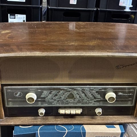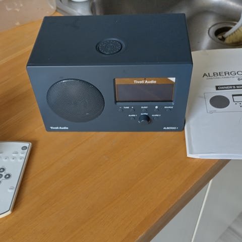 LG bordradio med digitalt display og frontplaceret højttaler. Radioen har knapper til kanalvalg og betjening på fronten samt volumenhjul. På bagsiden er der teleskopantenne og strømtilslutning. Kabinettet er i sort med sølvfarvet frontpanel. Velegnet som enkel radio til brug i fx køkken, stue eller soveværelse.