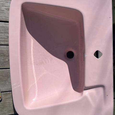 Imperial håndvask på søjle i hvidt porcelæn. Vasken står på en fritstående søjle og har integreret overløb. Der er monteret 3-huls armatur i messing med separate greb til varmt og koldt vand samt hane i midten. Grebene har hvide detaljer. Vasken egner sig til badeværelse, gæstetoilet eller lignende installation, hvor der ønskes en klassisk porcelænsvask med søjle og synligt armatur i messing. Har selv købt den brugt men den passede ikke på vores badeværelse desværre.